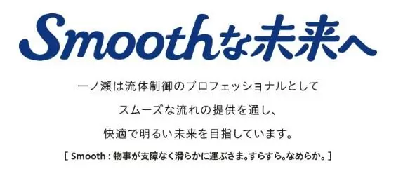 流体制御に欠かせない“スムーズさ”と、一ノ瀬が大切にしている “素早く、丁寧に、正確に”という仕事への姿勢を「Smooth」に込め、 それらを徹底することで、よりよい未来をつくっていくんだという決意表明として 「未来へ」という言葉を使用しています。