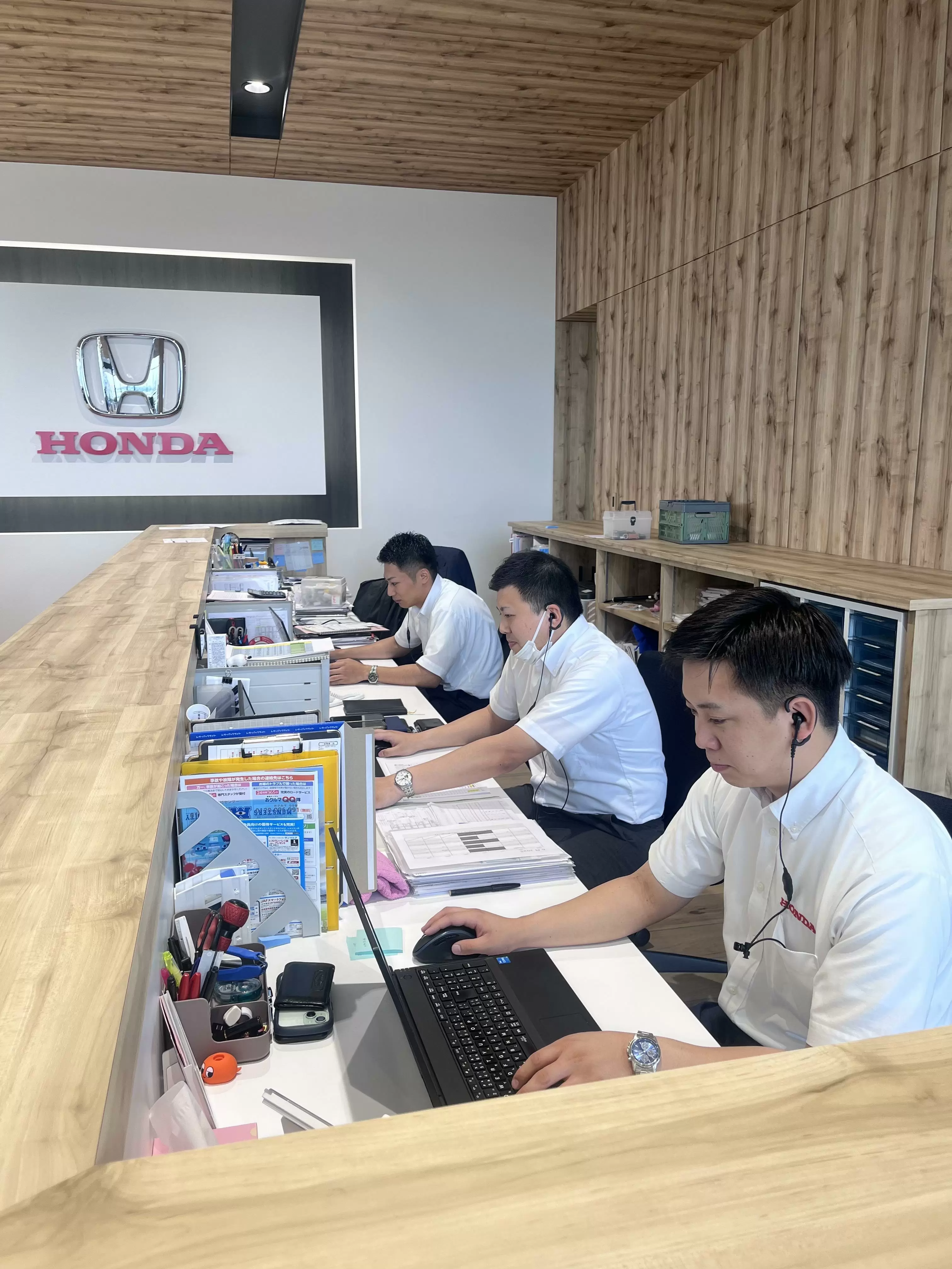 お客様に最高のサービスをご提供するために、営業、サービス、フロント、事務スタッフが一丸となって取り組んでいます。