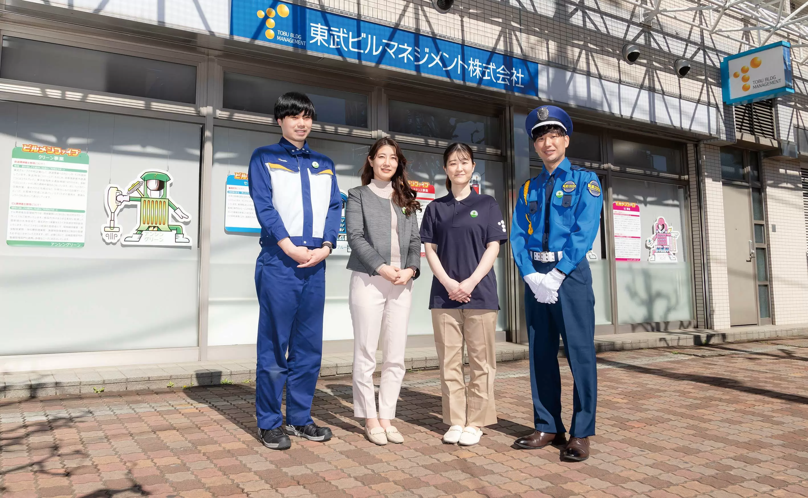 私たちは、建物を利用するすべての方に「安全と安心」を提供するため、四つの部門(設備、警備、清掃、店舗管理)が緊密に連携しながら、日々の業務に取り組んでいます!