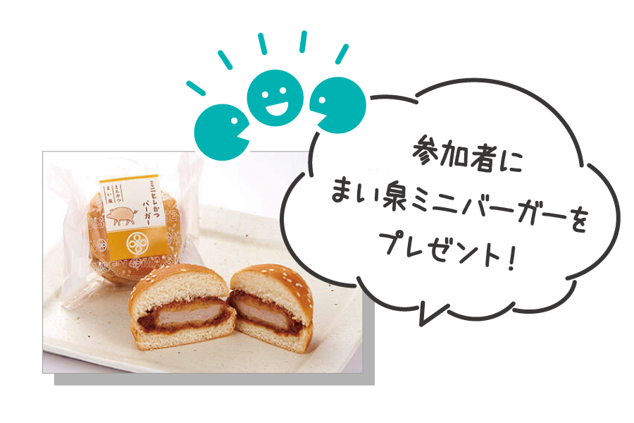 場内にカフェブレイクコーナーを設置!ブース訪問のあいまにほっと一息つきながら情報の整理や学生同士の交流にご活用いただけます♪さらに、企業が2分間のPRを行う『会社の推しポイント発表会』を実施。気になる企業をチェックしよう!13時までに来場した学生の方に、まい泉のミニバーガーをプレゼント。カフェブレイクコーナーでお召し上がりください♪