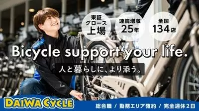 <東証グロース上場> サイクルショップ/配属エリア確約・転居を伴う転勤無/充実の研修制度/人の役に立つ仕事